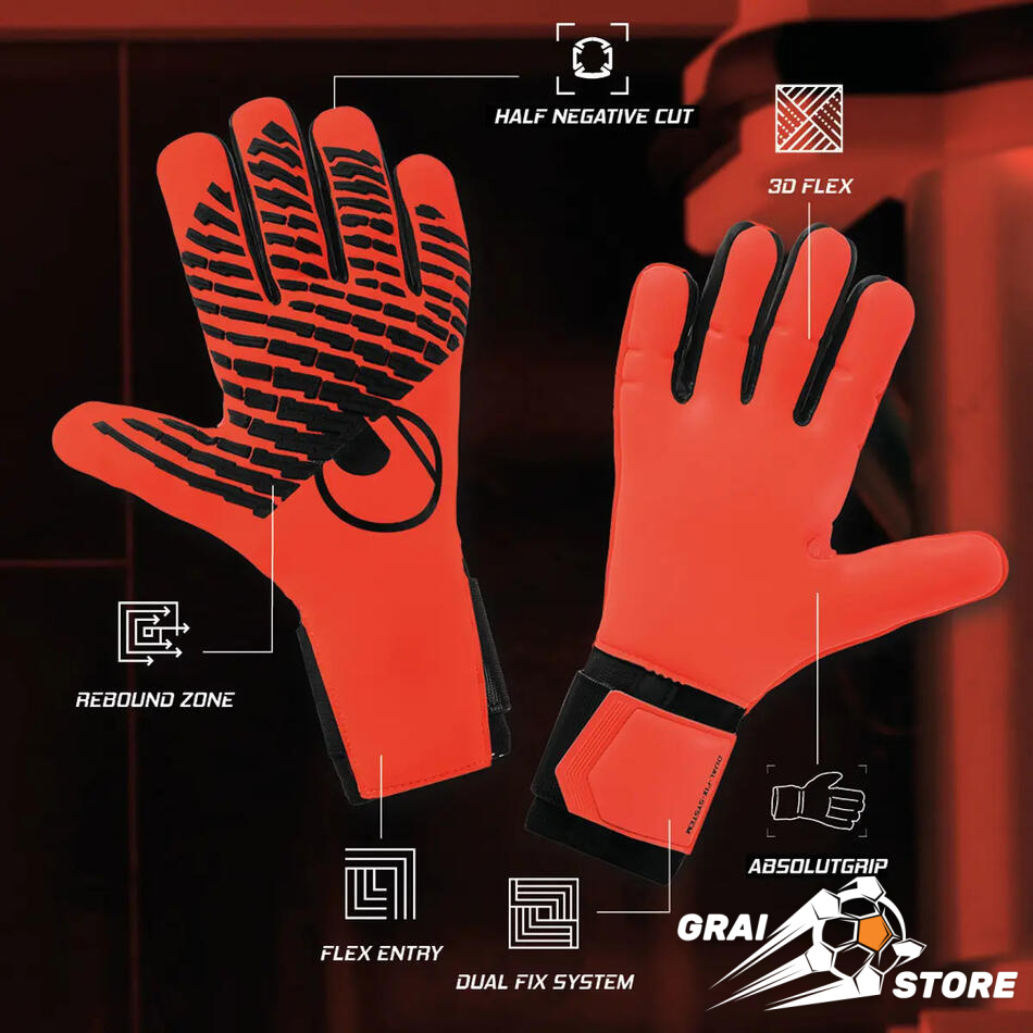 Піноматеріал для захоплення огортає край долоні, збільшуючи площу контакту з м'ячем. На вказівному пальці та мізинці піноматеріал для захоплення поширюється всередину, забезпечуючи максимальне зчеплення під час лову. Це дає вам ще більше контролю – незалежно від того, як м'яч летить до воріт.
